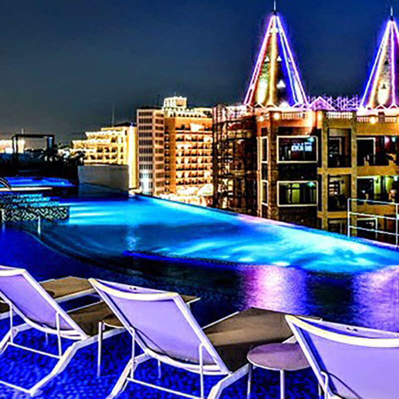 充実したホテルサービスで、快適な滞在をお届けします。海と夕陽を望むインフィニティプールをはじめ、展望ジャグジーや子供用プール、天然温泉の岩風呂を備えた本格設備。夕暮れ時には素晴らしいサンセットをご覧いただけます。アールデコ調と沖縄モダンが融合したメイン棟、全客室温泉が楽しめるプレミア棟の2構成。