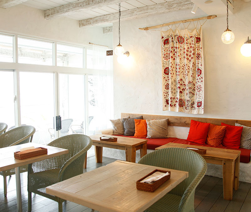 北谷サンセットビーチのすぐ近くにあり、テラス席からは海を一望できる。癒される景色を眺めながら、ふわふわのパンケーキとコーヒーの香りで、贅沢なひとときを過ごしてみては。